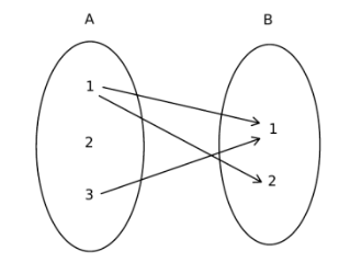 If A,B are finite sets, then may be represented by a diagram consisting of two sets with elements and connecting arrows. For instance, let where , and